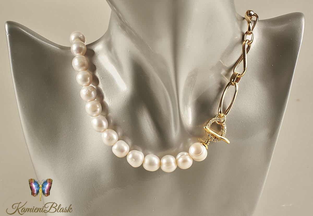 Naszyjnik z pereł naturalnych w złoconej oprawie
