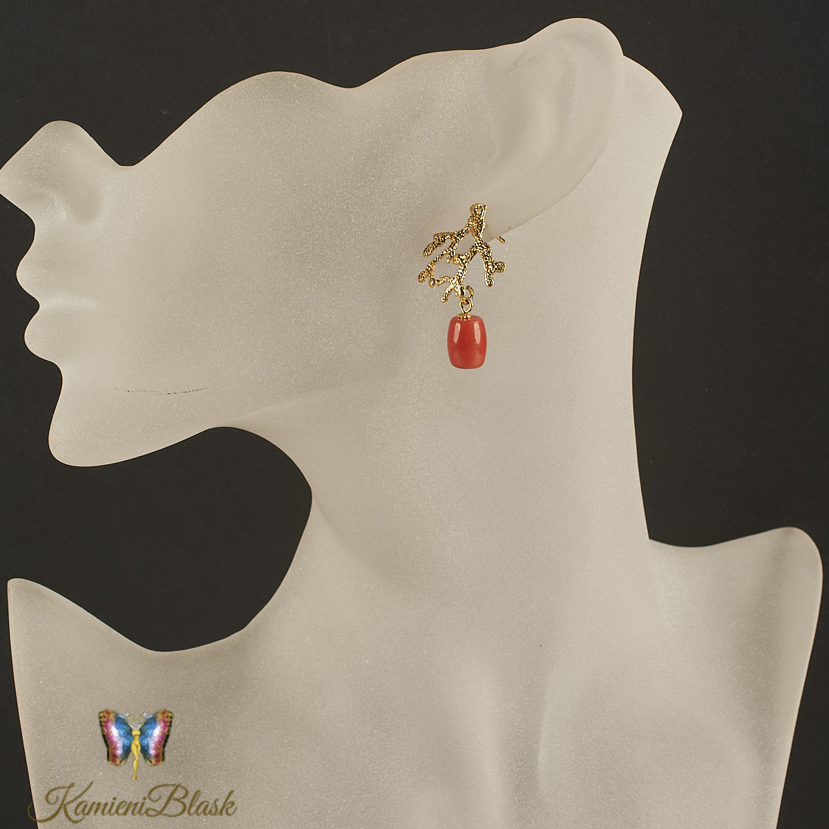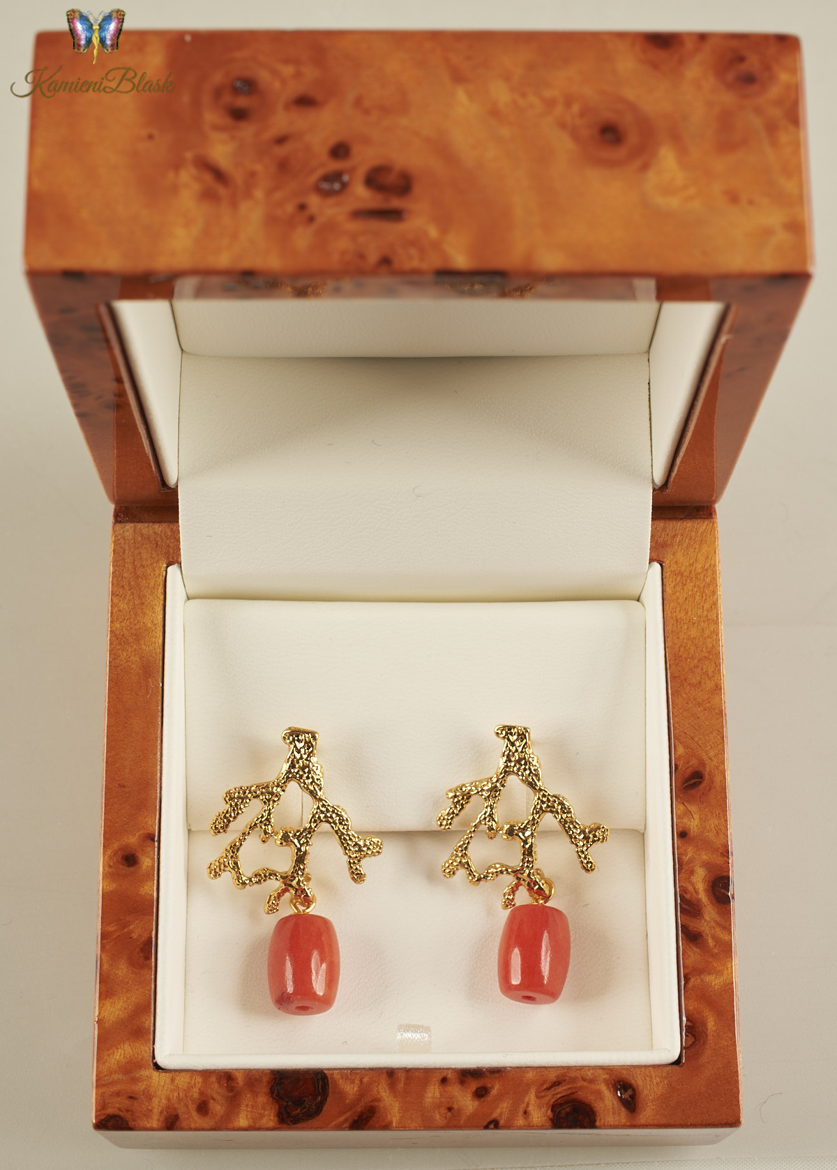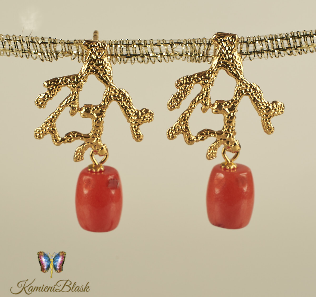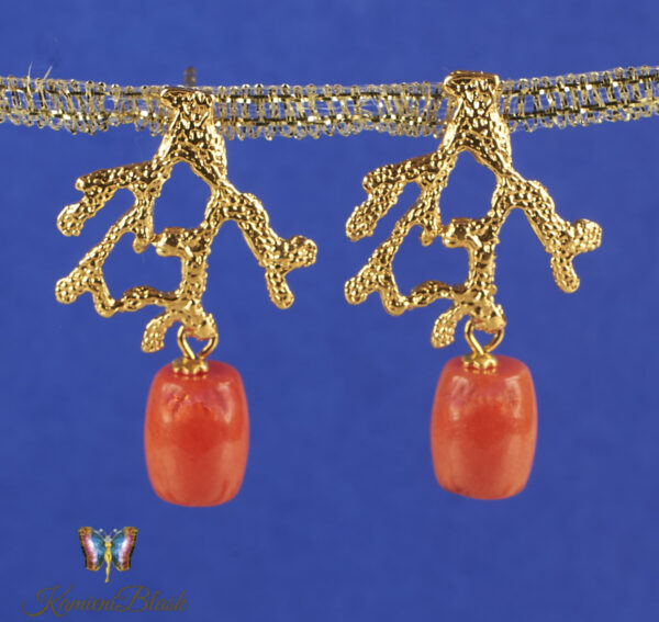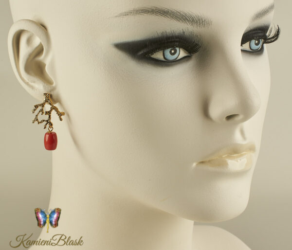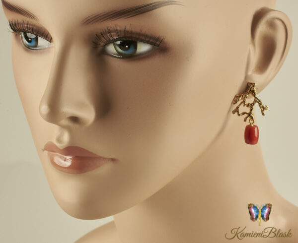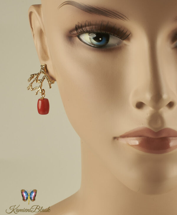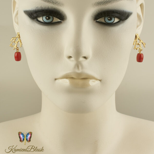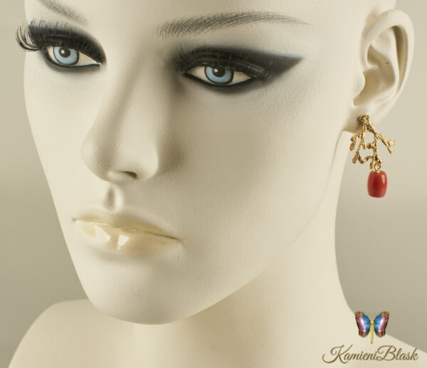 Kolczyki z korala naturalnego w złoconej, ciekawej formie koralowca są niewątpliwie bardzo efektowne.